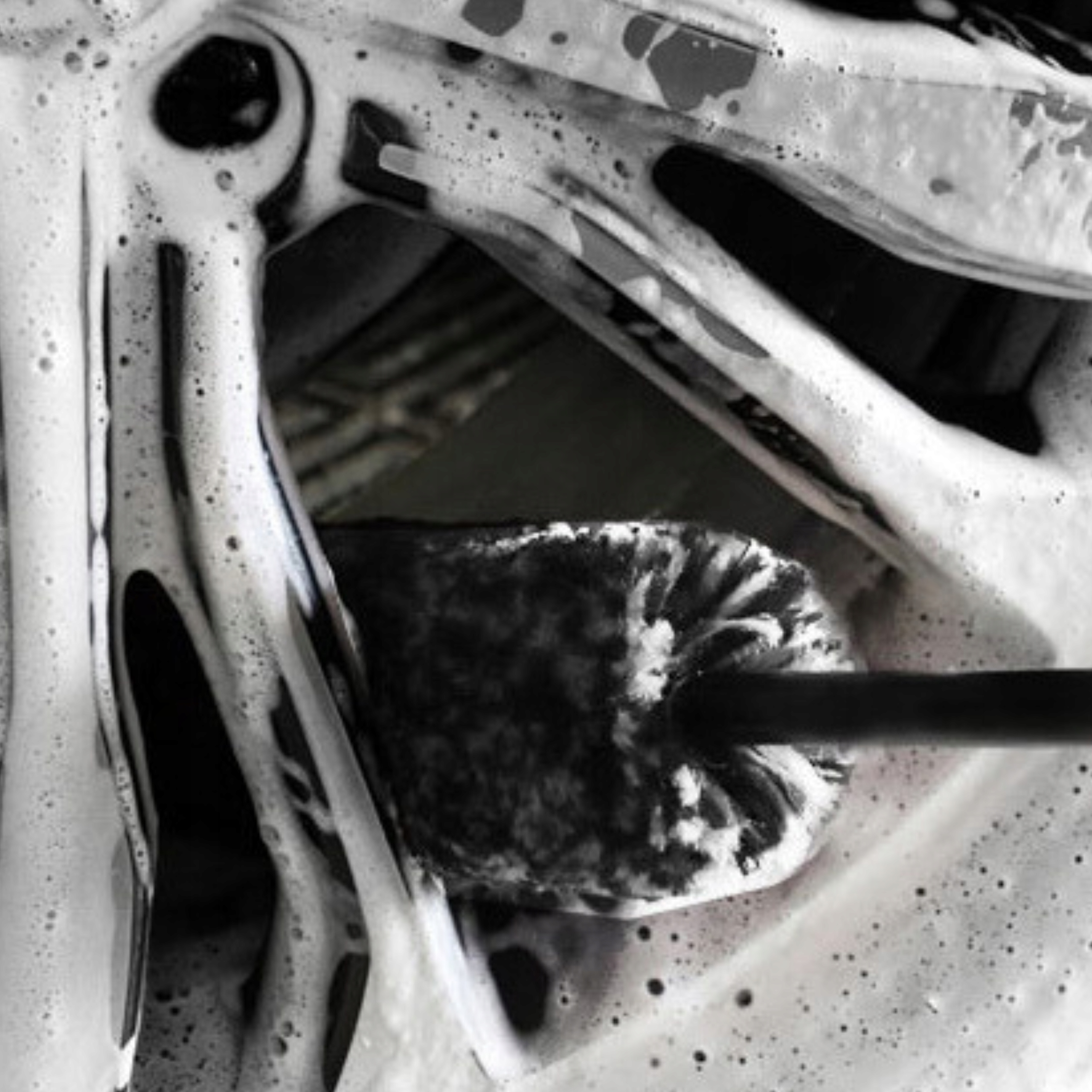 3. Użyj szczotki, aby dokładnie oczyścić felgi, docierając do trudno dostępnych miejsc między szprychami.