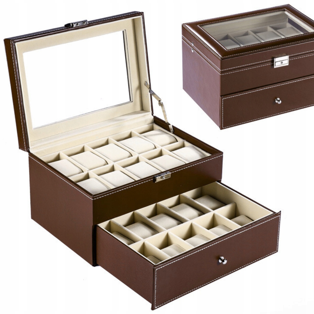 Dwa poziomy przechowywania – 20 przegródek pozwala na wygodne i estetyczne rozmieszczenie zegarków.