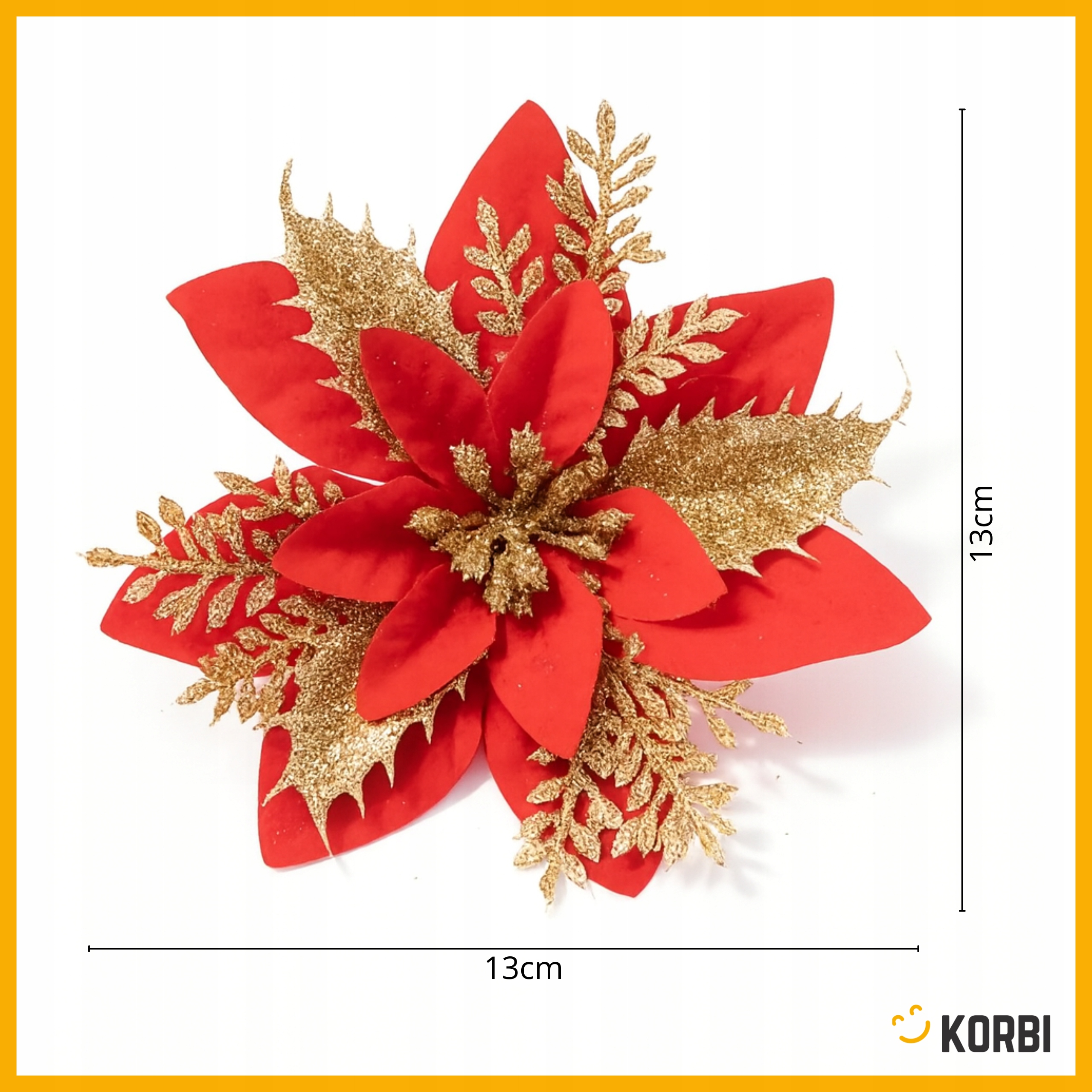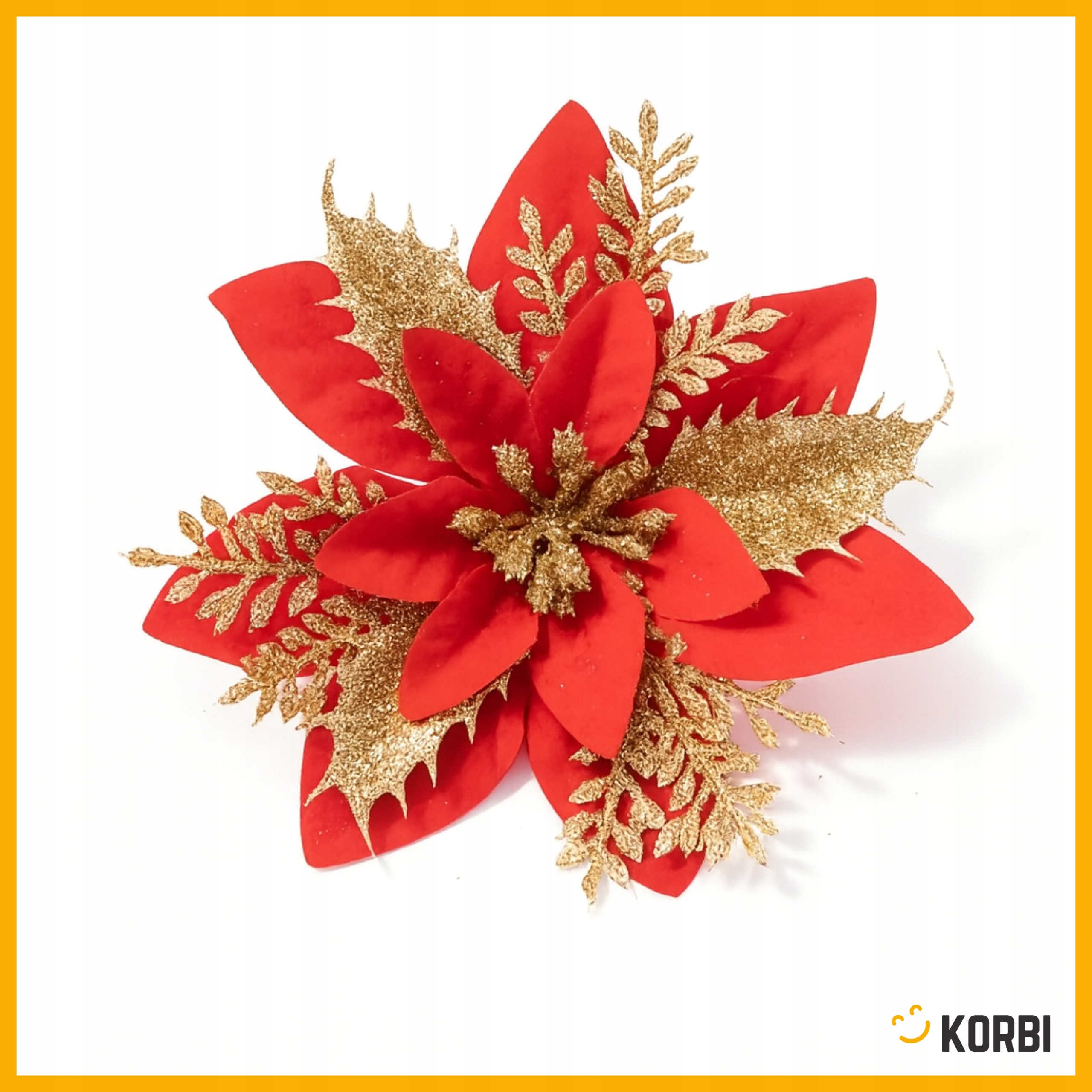 GWIAZDA BETLEJEMSKA POINSECJA CZERWONA ZŁOTA KWIAT OZDOBA ŚWIĄTECZNA 13CM