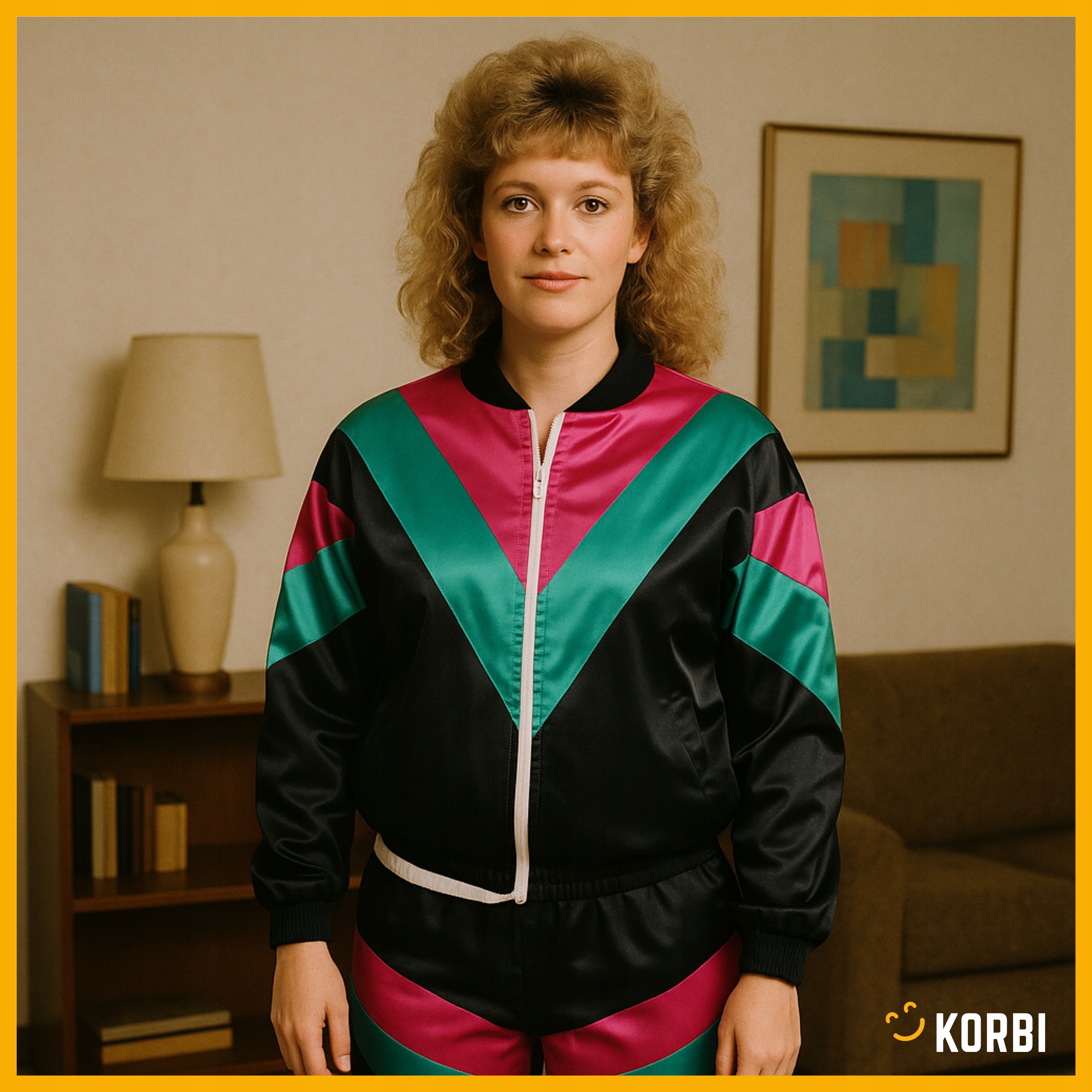 - Komplet dresowy inspirowany modą lat 80. – idealny na tematyczne imprezy