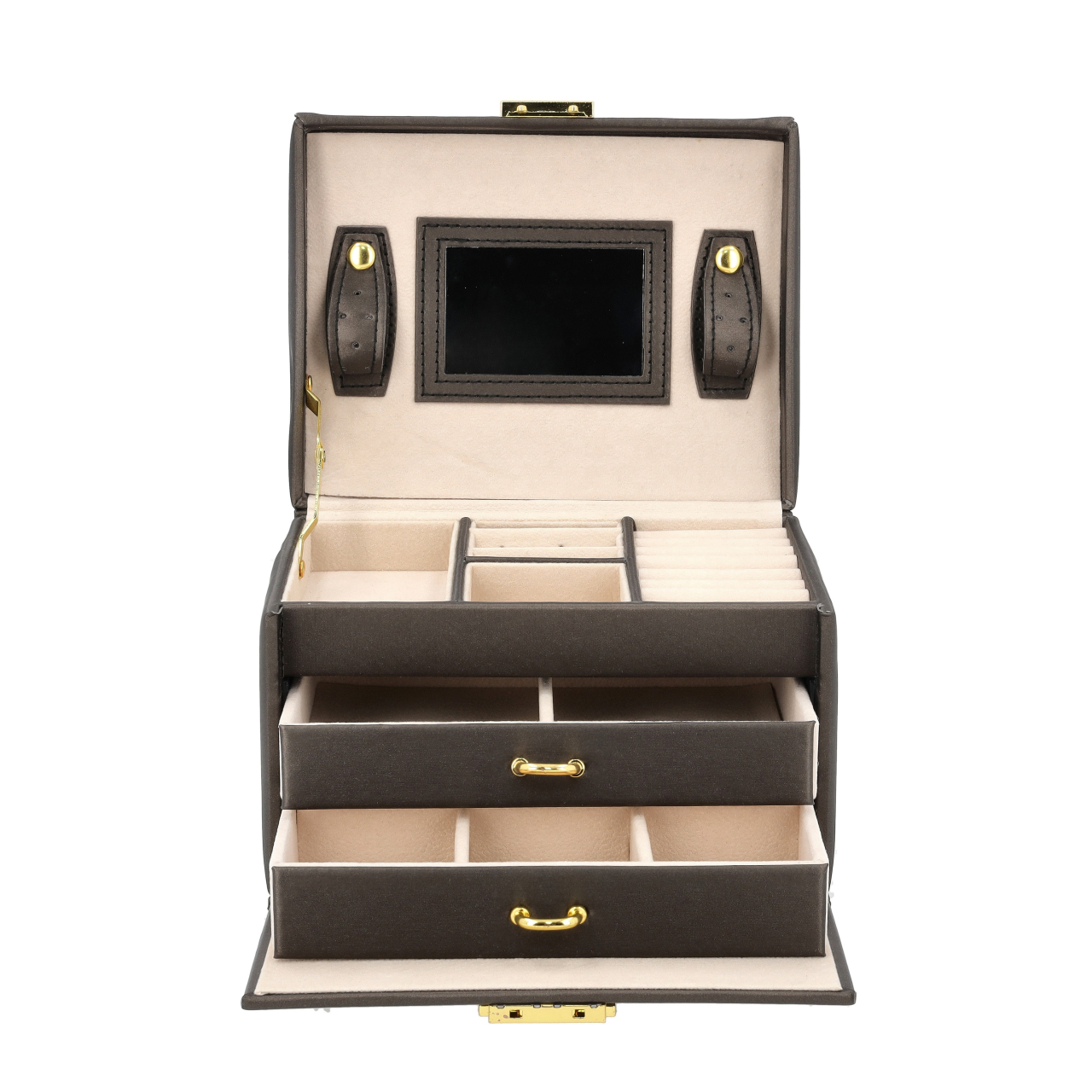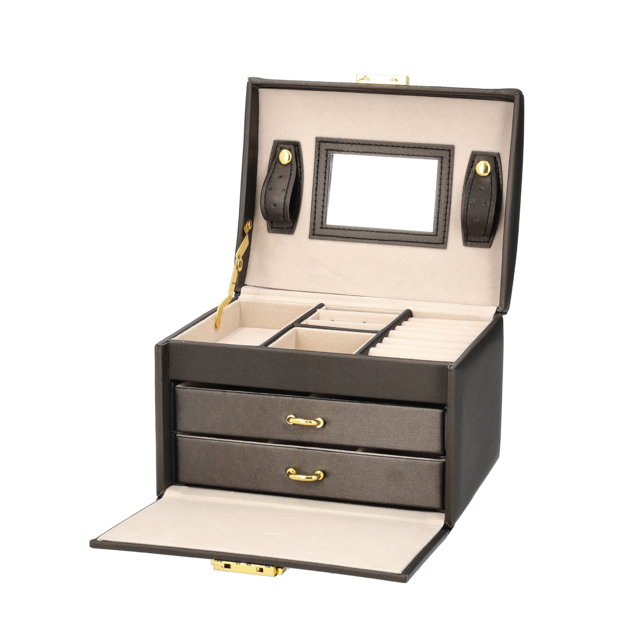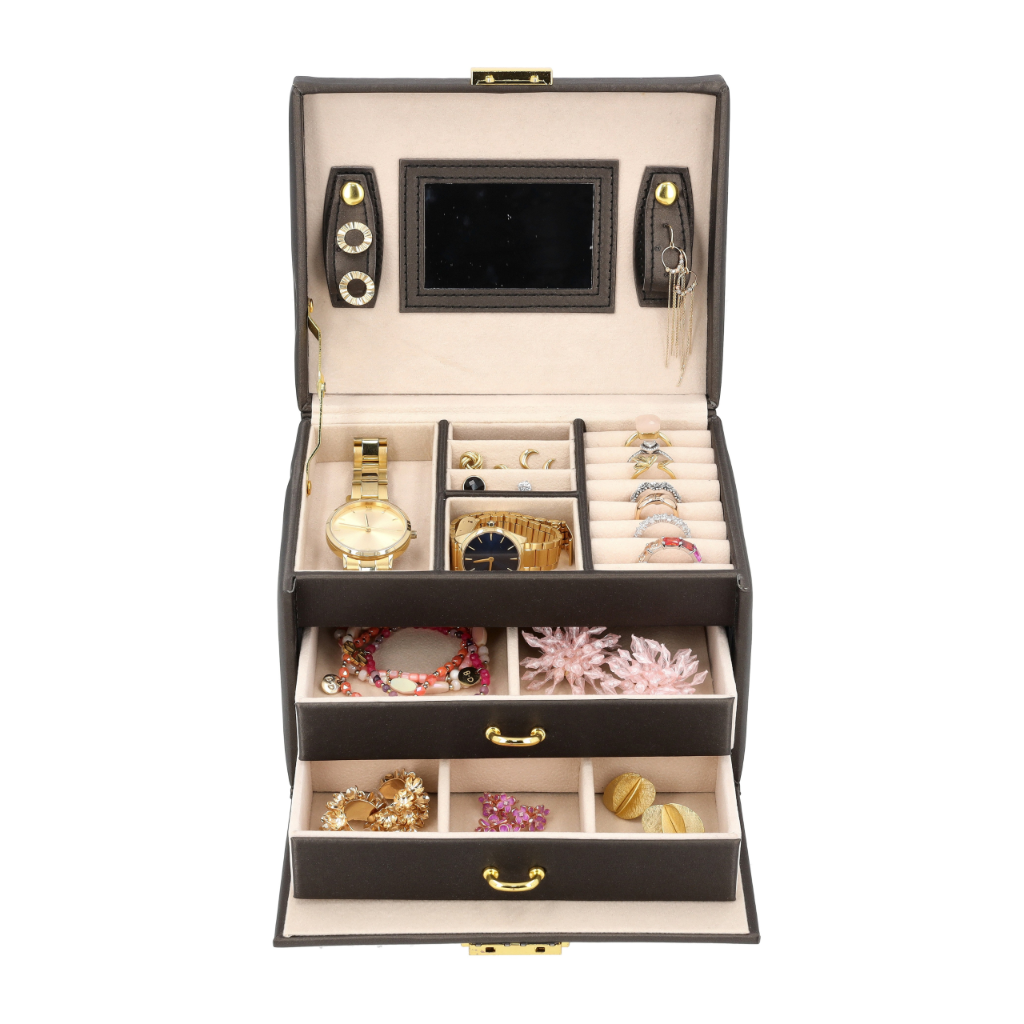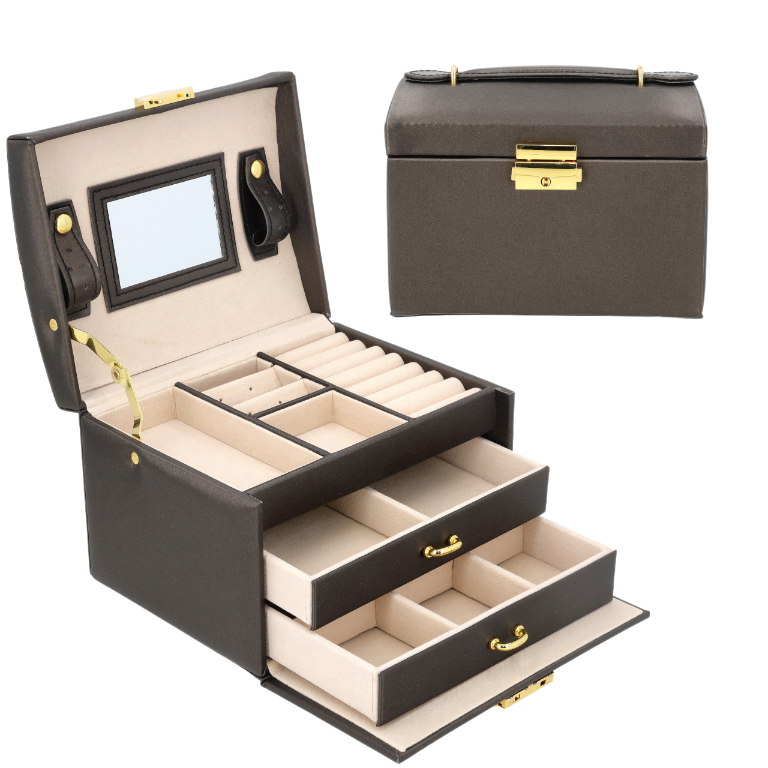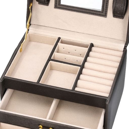 - Bezpieczne zamknięcie – Cała szkatułka może zostać zamknięta na kluczyk, zapewniając ochronę biżuterii.