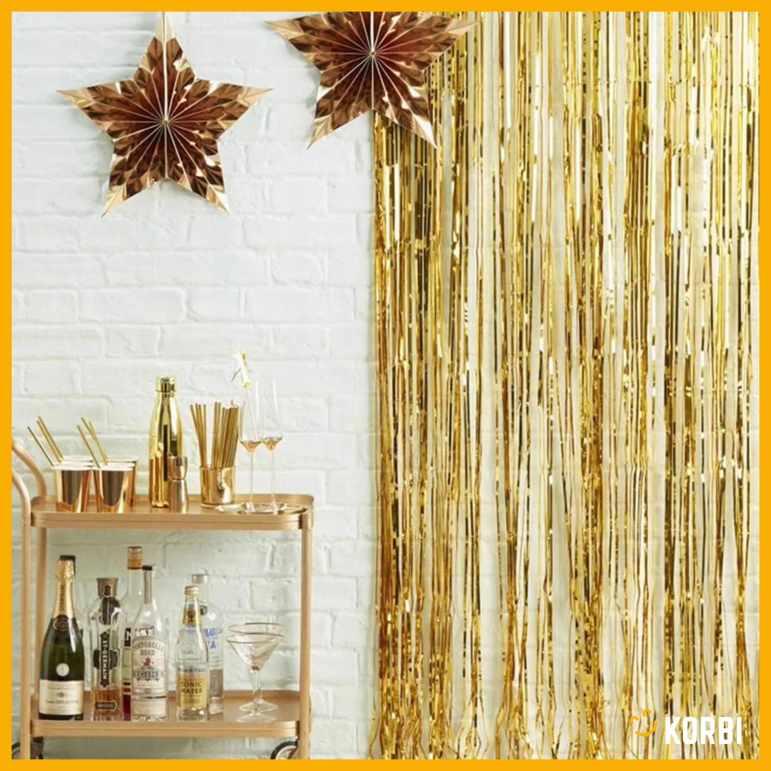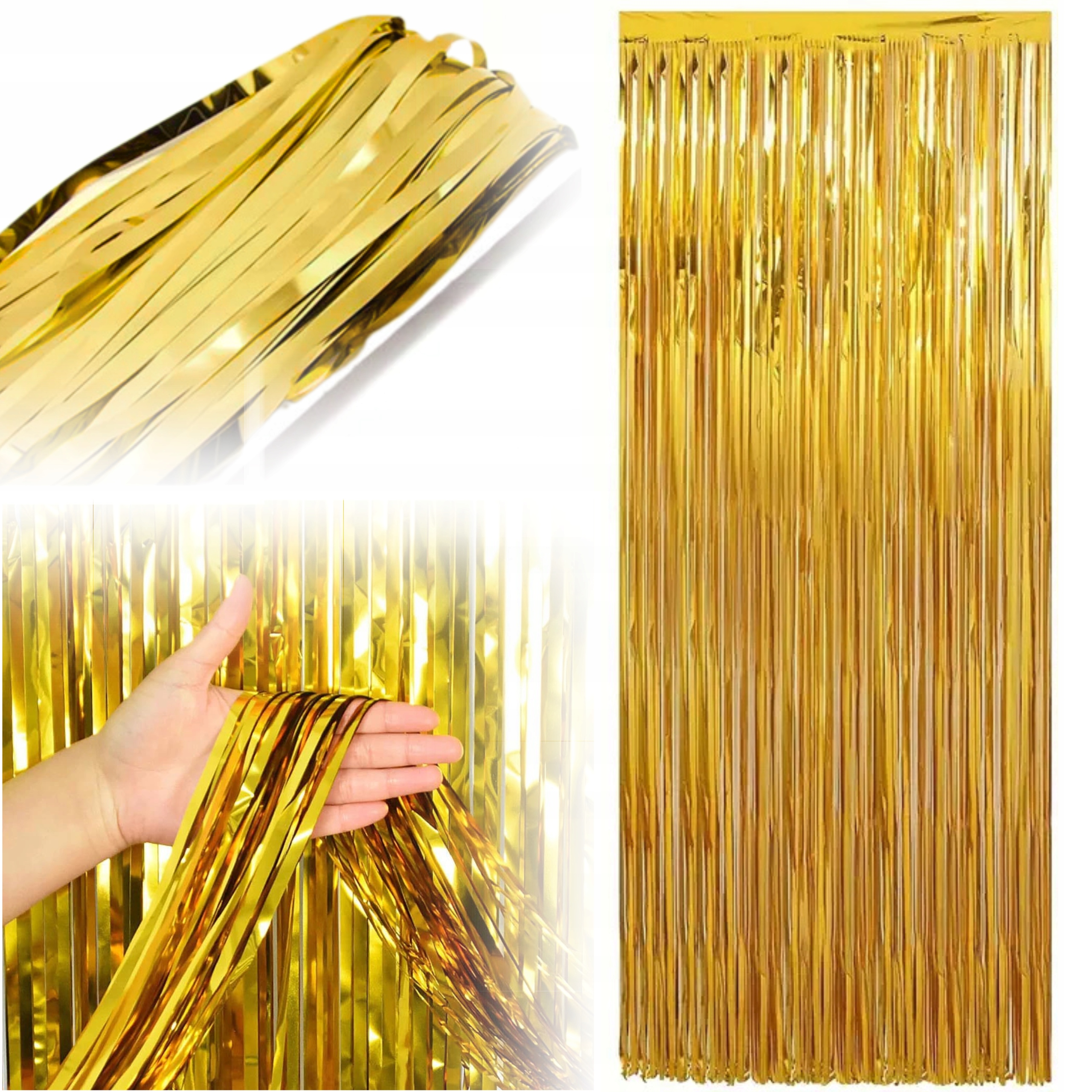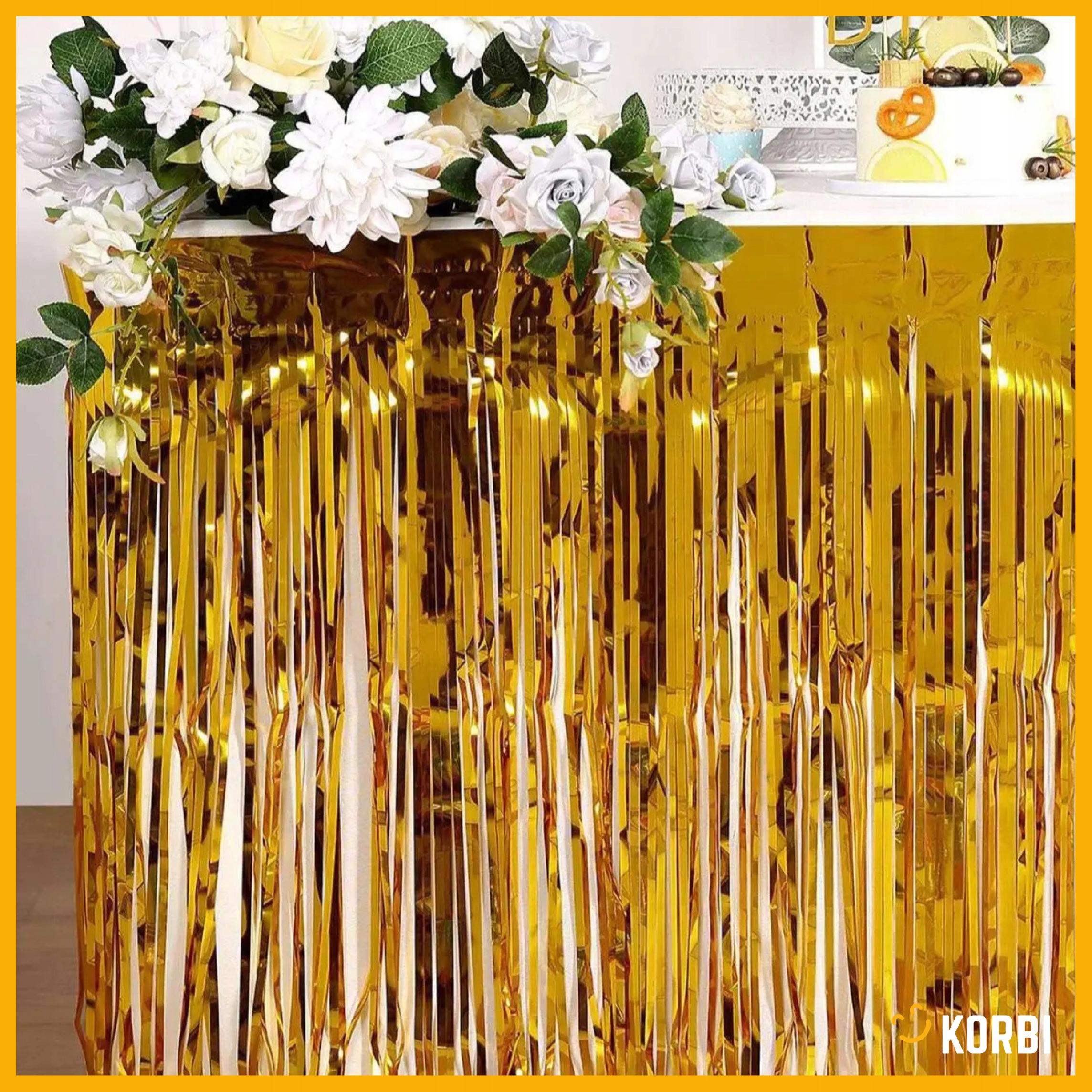 Złota kurtyna dekoracyjna to błyszcząca ozdoba idealna na każdą okazję – od imprez urodzinowych po Halloween, Sylwestra czy wieczory tematyczne. Jej lśniące pasma tworzą efektowną ściankę, która może służyć jako tło do zdjęć, dekoracja wejścia lub strefy tanecznej. Uniwersalna szerokość 1 m i wysokość 2 m sprawiają, że łatwo dopasujesz ją do różnych przestrzeni i aranżacji. Złoty połysk dodaje elegancji i świetnie odbija światło, tworząc wyjątkowy klimat na każdej imprezie.