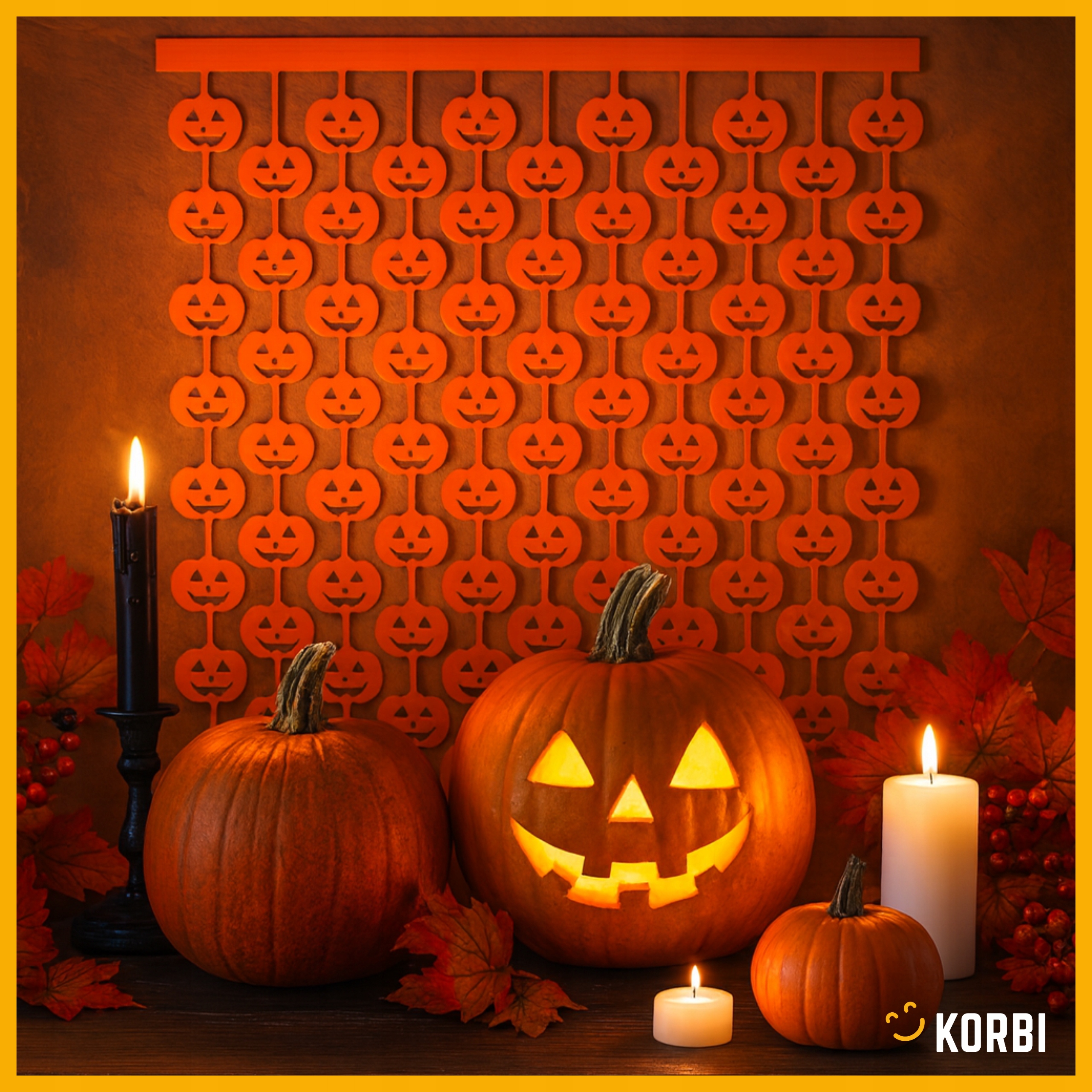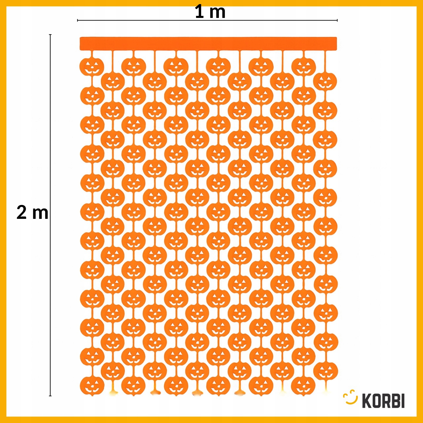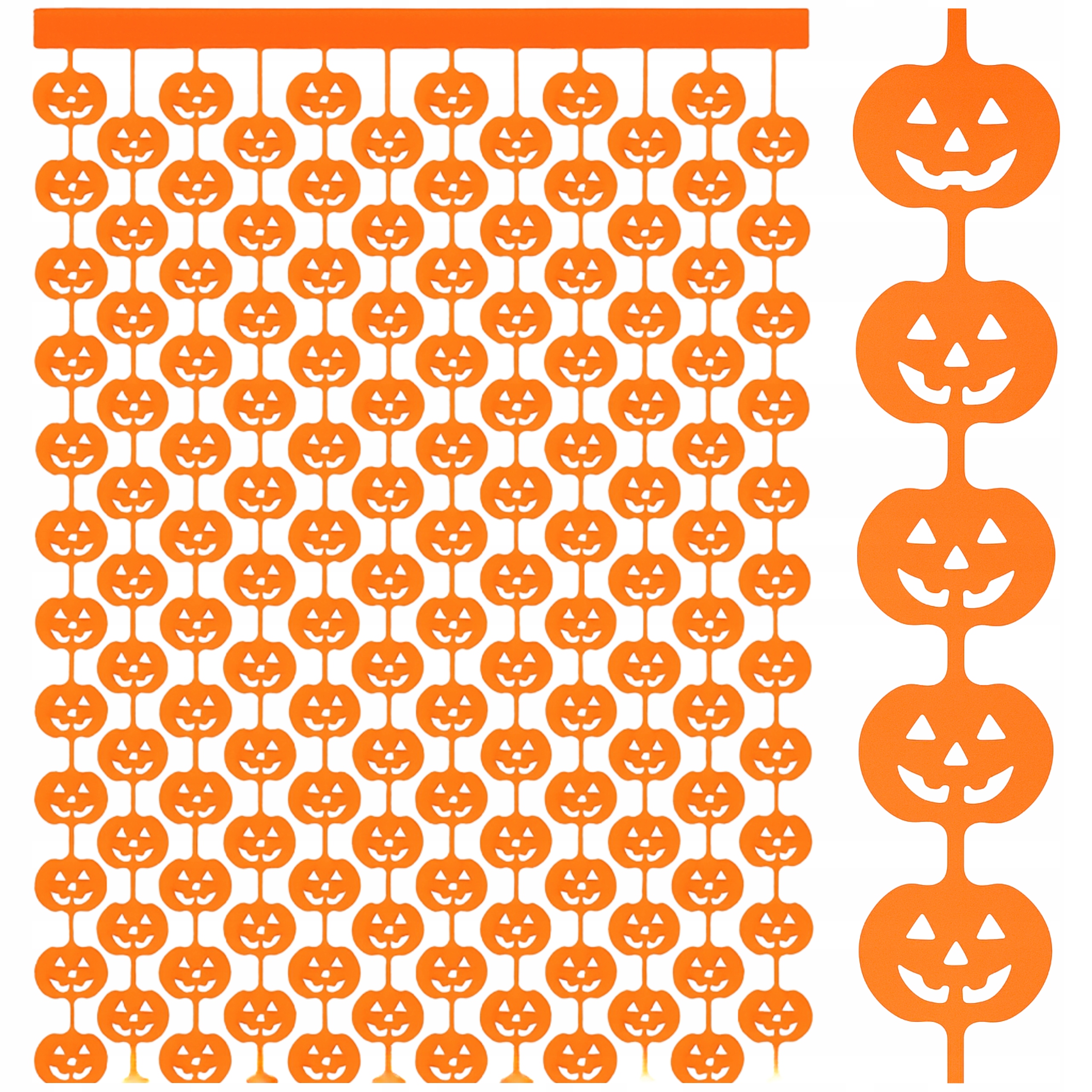 Girlanda w formie kurtyny z motywem dyni to efektowna ozdoba, która wprowadzi wyjątkowy klimat grozy i zabawy na Twojej imprezie halloweenowej.