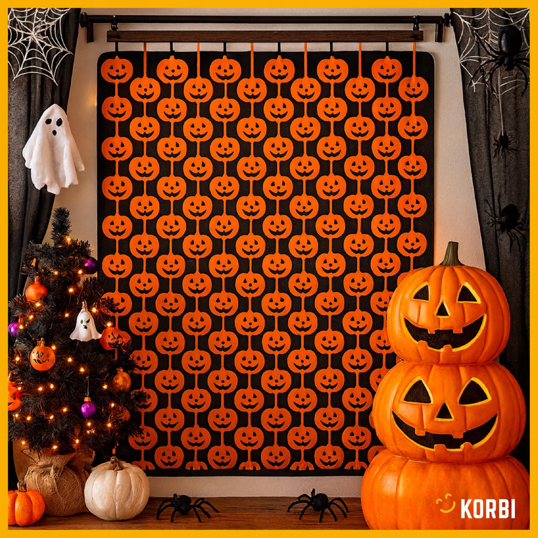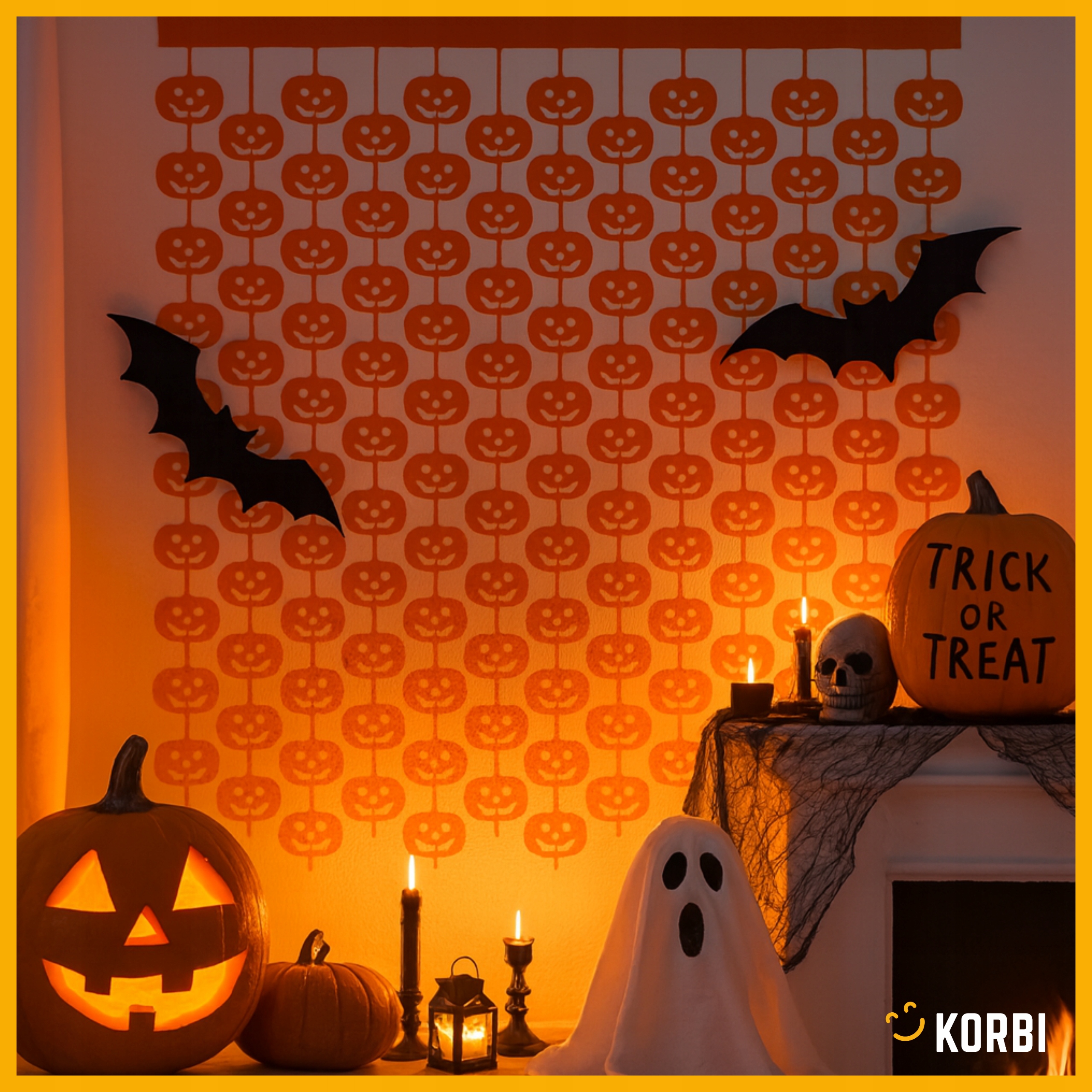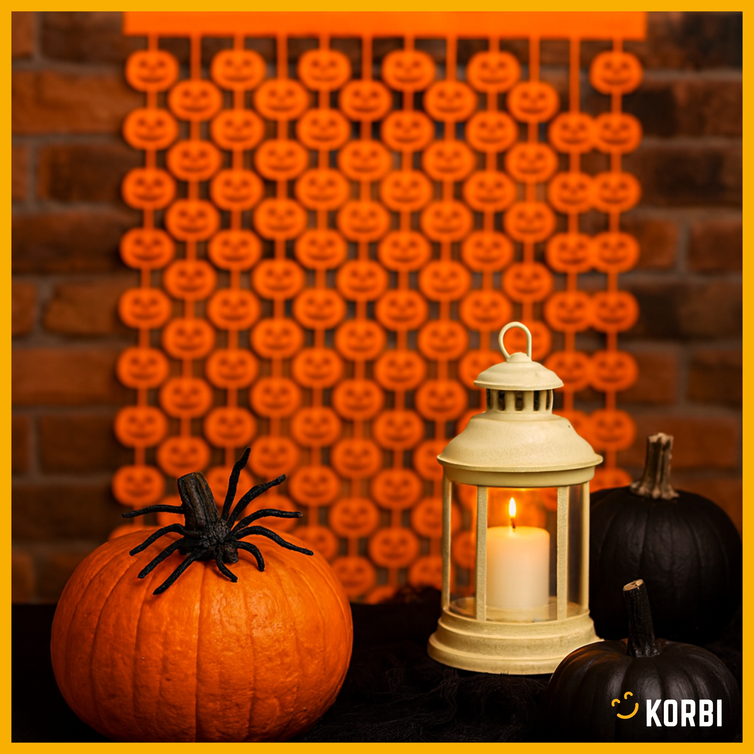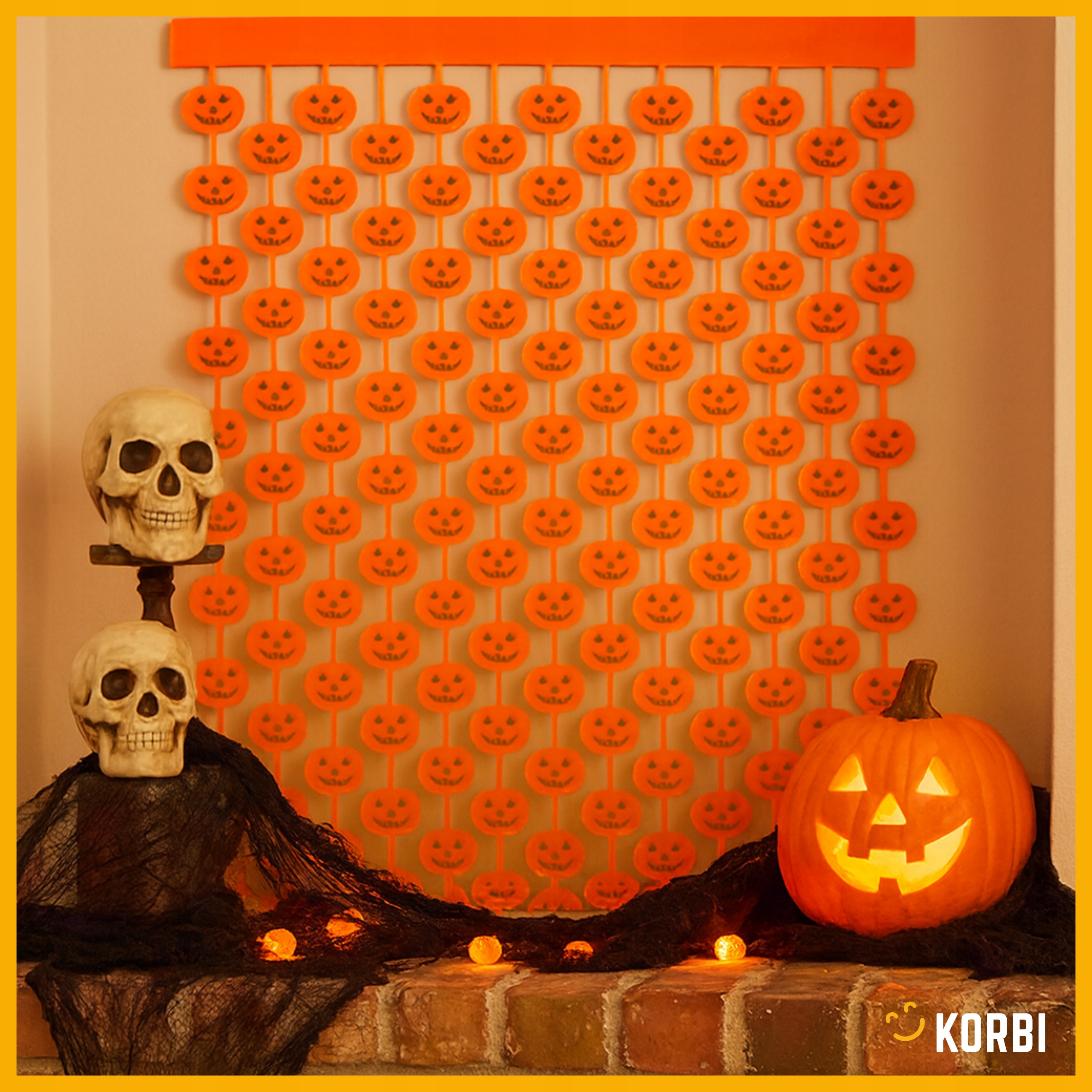 Girlanda w formie kurtyny z motywem dyni to efektowna ozdoba, która wprowadzi wyjątkowy klimat grozy i zabawy na Twojej imprezie halloweenowej.