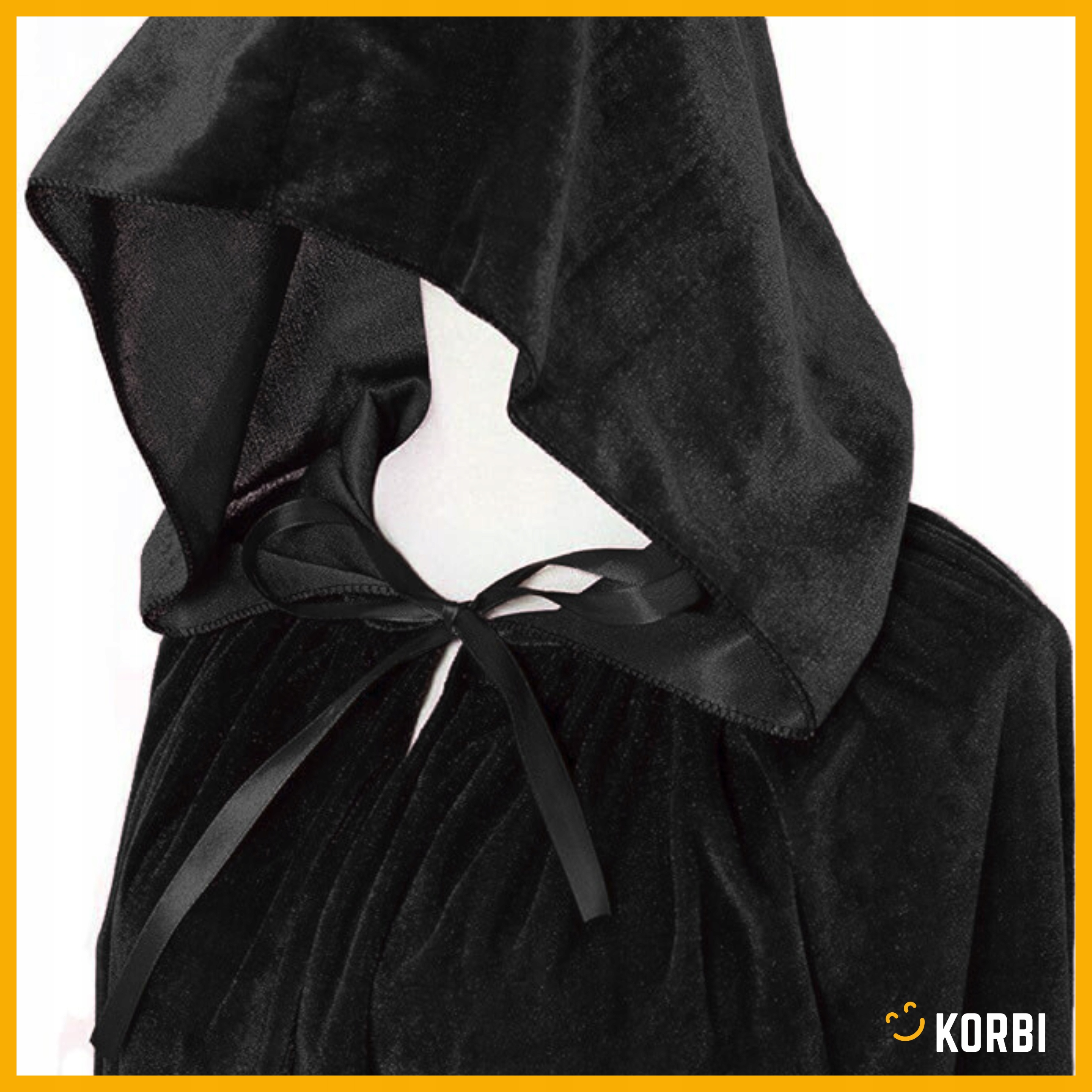 Długa peleryna czarownicy w kolorze czarny to niezbędny element przebrania na Halloween, karnawał lub bal tematyczny. Dzięki intensywnej barwie i praktycznemu kapturowi strój od razu przyciąga wzrok i nadaje postaci tajemniczego, mrocznego charakteru. To uniwersalne przebranie, które można wykorzystać zarówno samodzielnie, jak i jako dodatek do innych kostiumów.