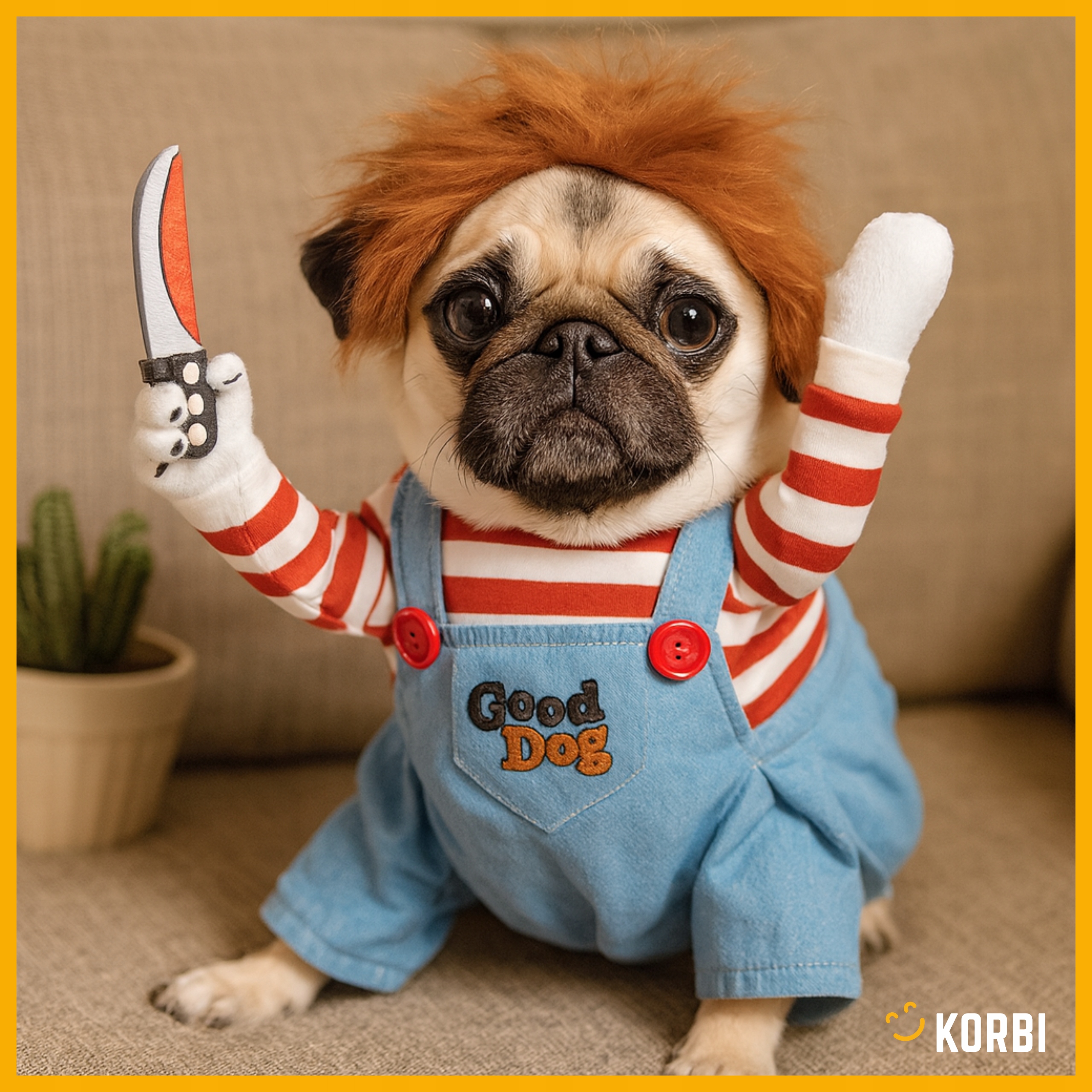 Uroczy i zabawny kostium dla psa, który z pewnością wywoła uśmiech na twarzach wszystkich gości. Idealny na Halloween, przyjęcia tematyczne, festiwale czy sesje zdjęciowe. Wykonany z miękkiego, lekkiego materiału, który zapewnia pupilowi komfort podczas noszenia. Strój jest łatwy do założenia i zdjęcia, a regulowane zapięcia pozwalają dopasować go do różnych rozmiarów psów.