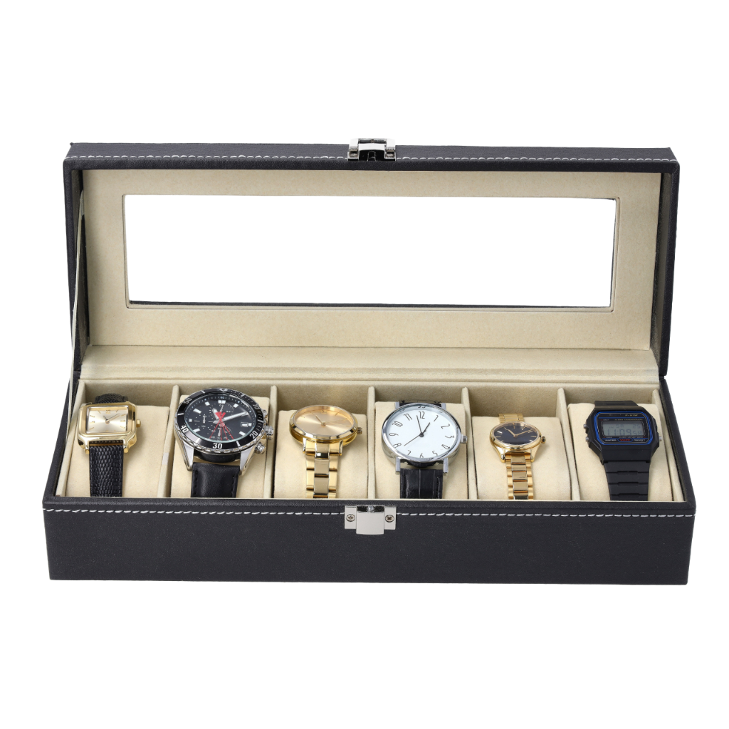 SZKATUŁKA NA ZEGARKI ETUI ORGANIZER PUDEŁKO EKSPOZYTOR NA PREZENT 6 ZEGARKÓW