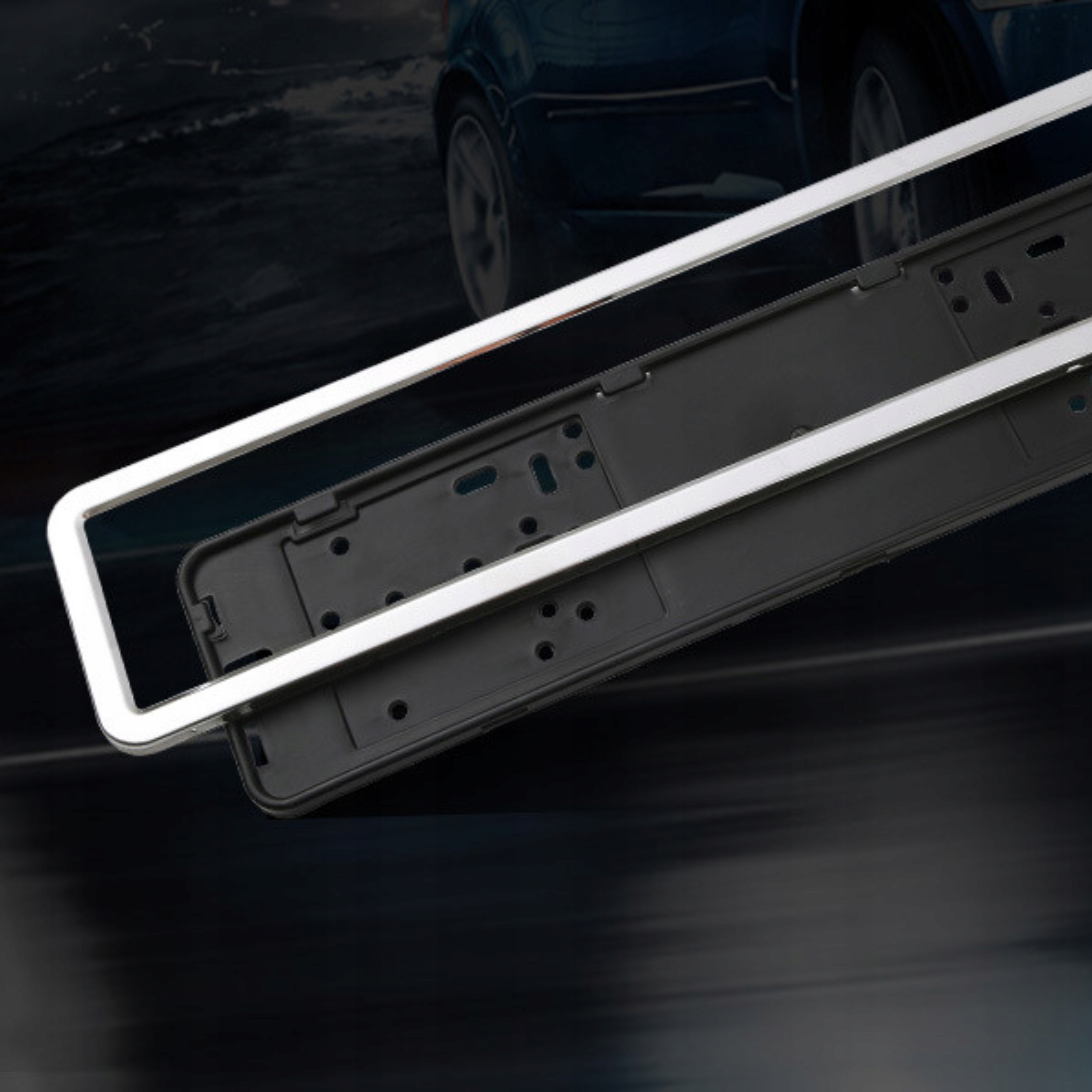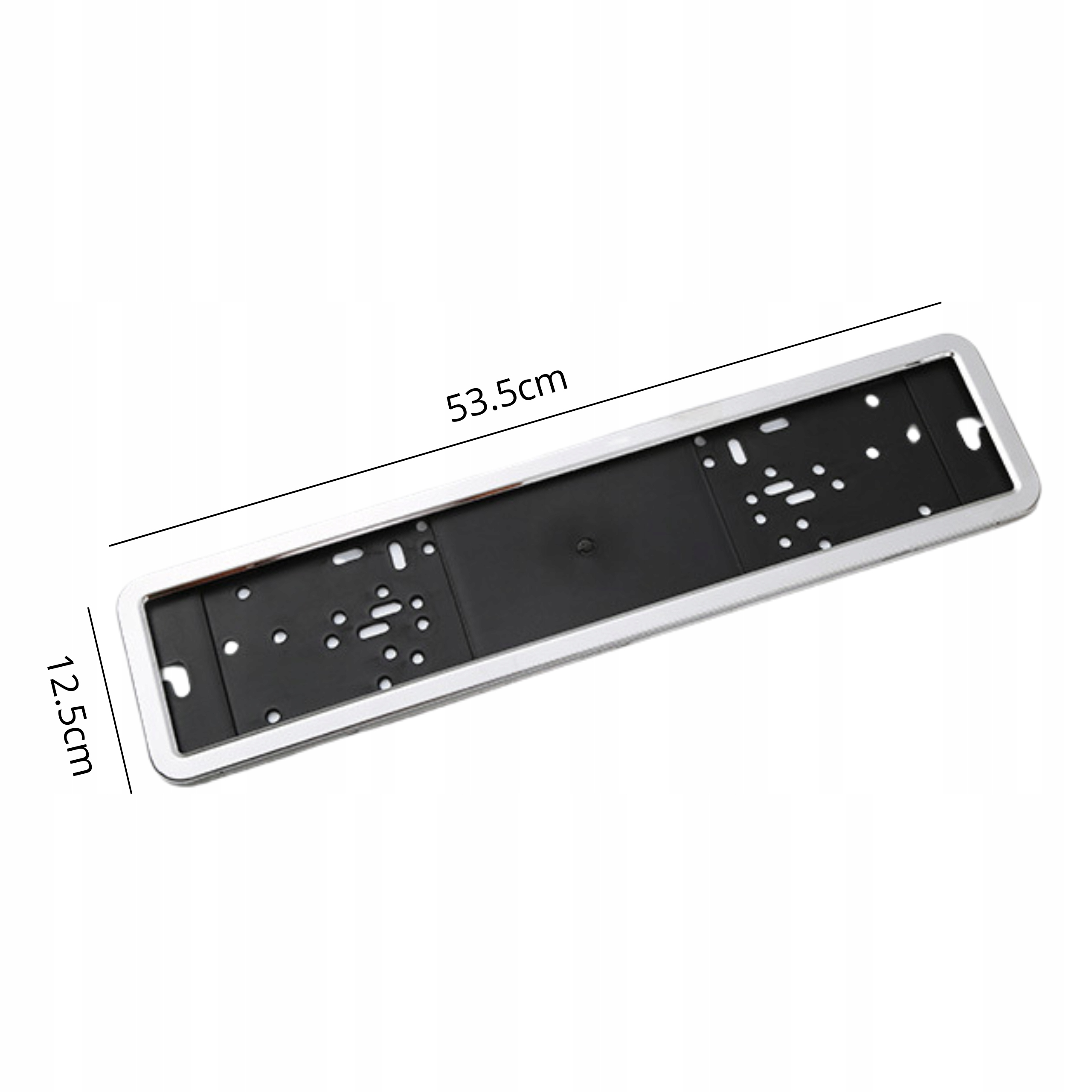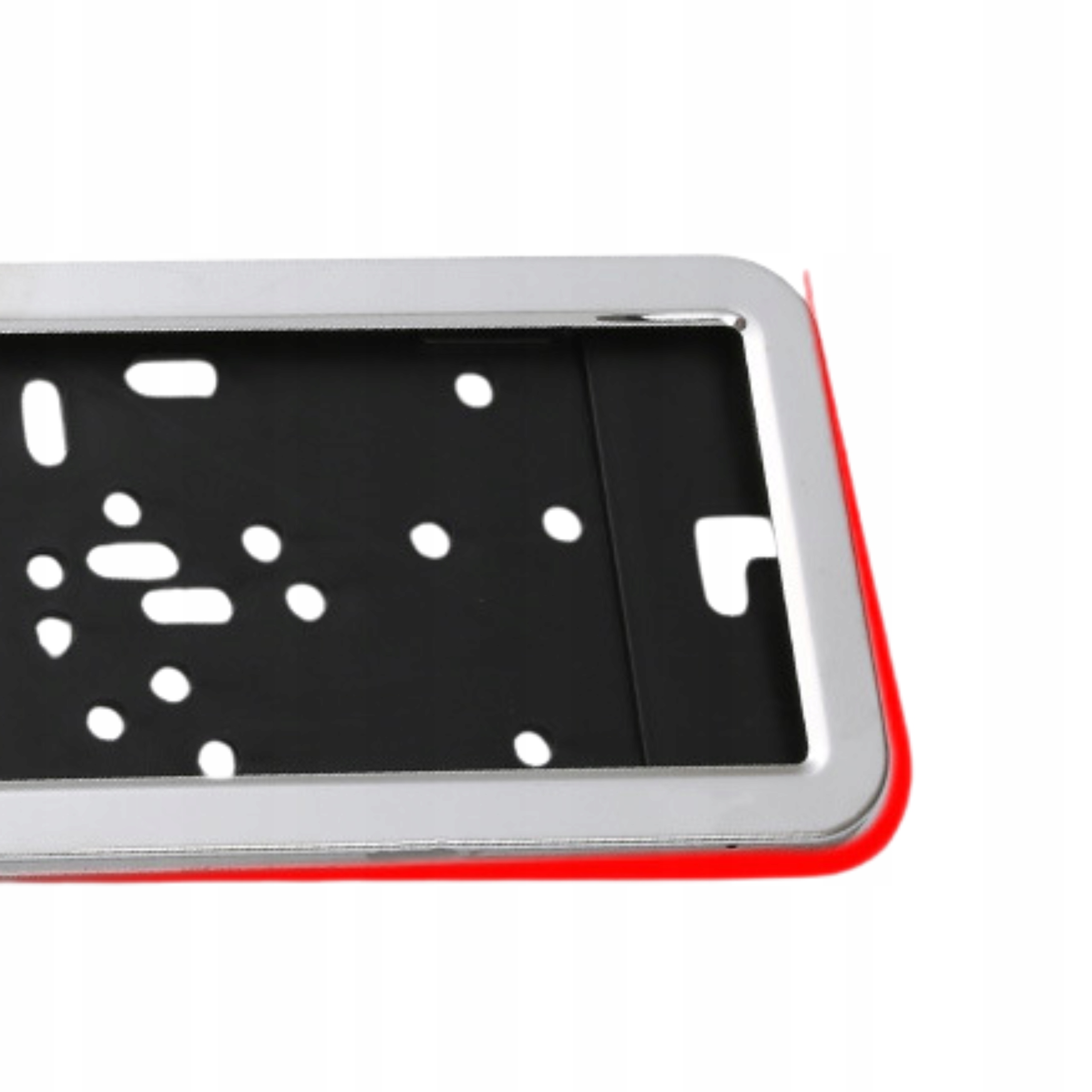 - Łatwa instalacja – dzięki dużej liczbie otworów montażowych, ramka umożliwia szybkie i łatwe zamocowanie, dopasowując się do istniejących otworów w tablicy oraz zderzaku.