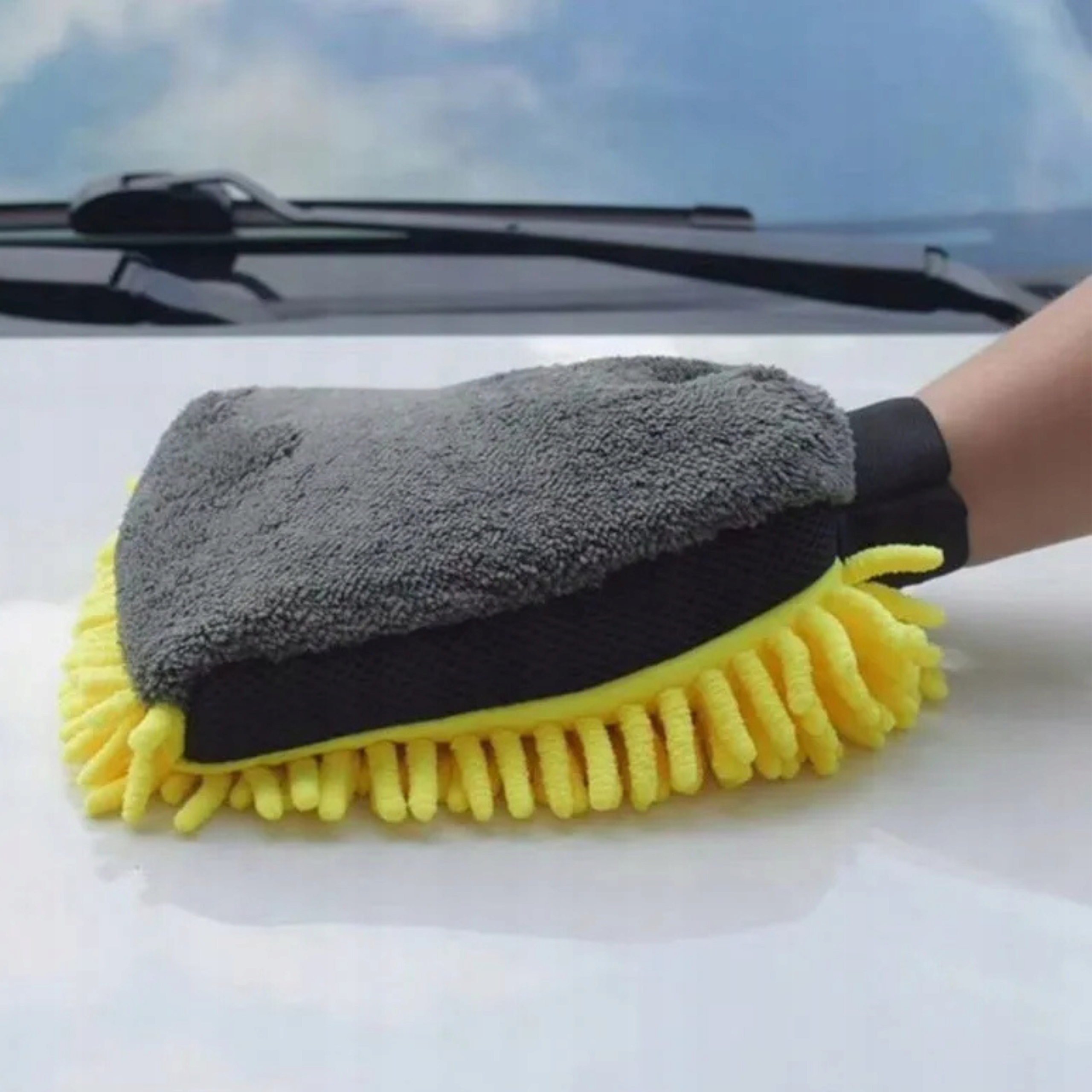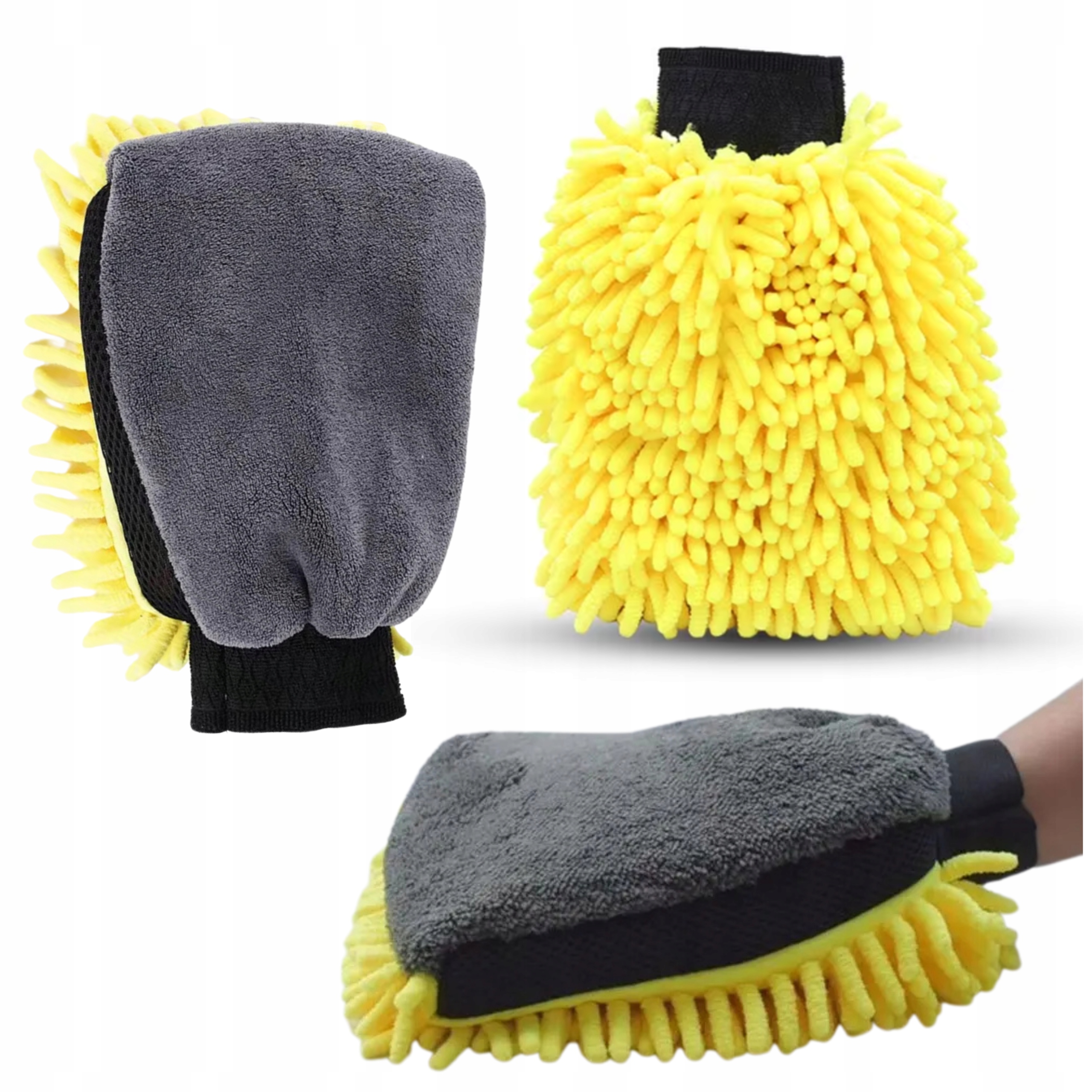 RĘKAWICA Z MIKROFIBRY DO MYCIA, CZYSZCZENIA SAMOCHODU – DWUSTRONNA GĄBKA 2W1