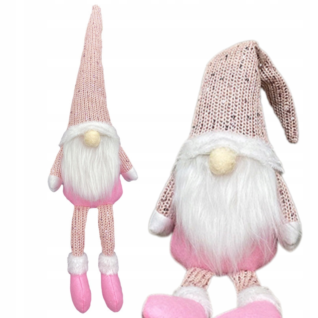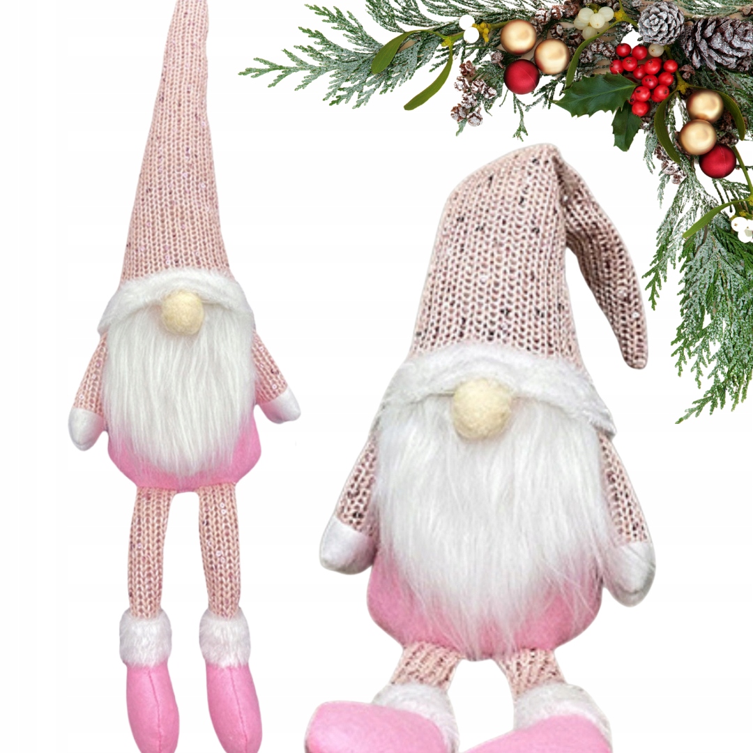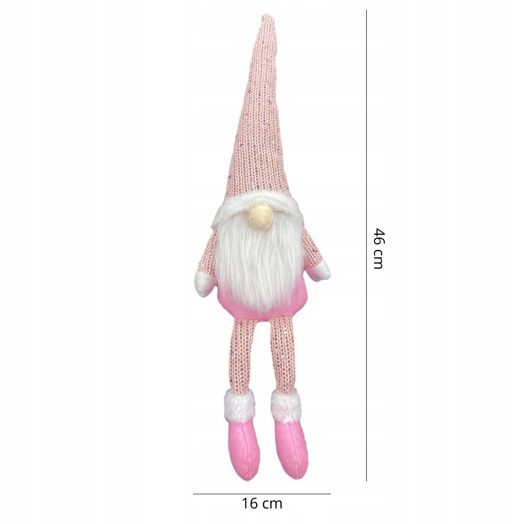 SKRZAT ŚWIĄTECZNY KRASNAL DEKORACJA GNOM SIEDZĄCY DUŻY OZDOBA RÓŻOWY 46CM