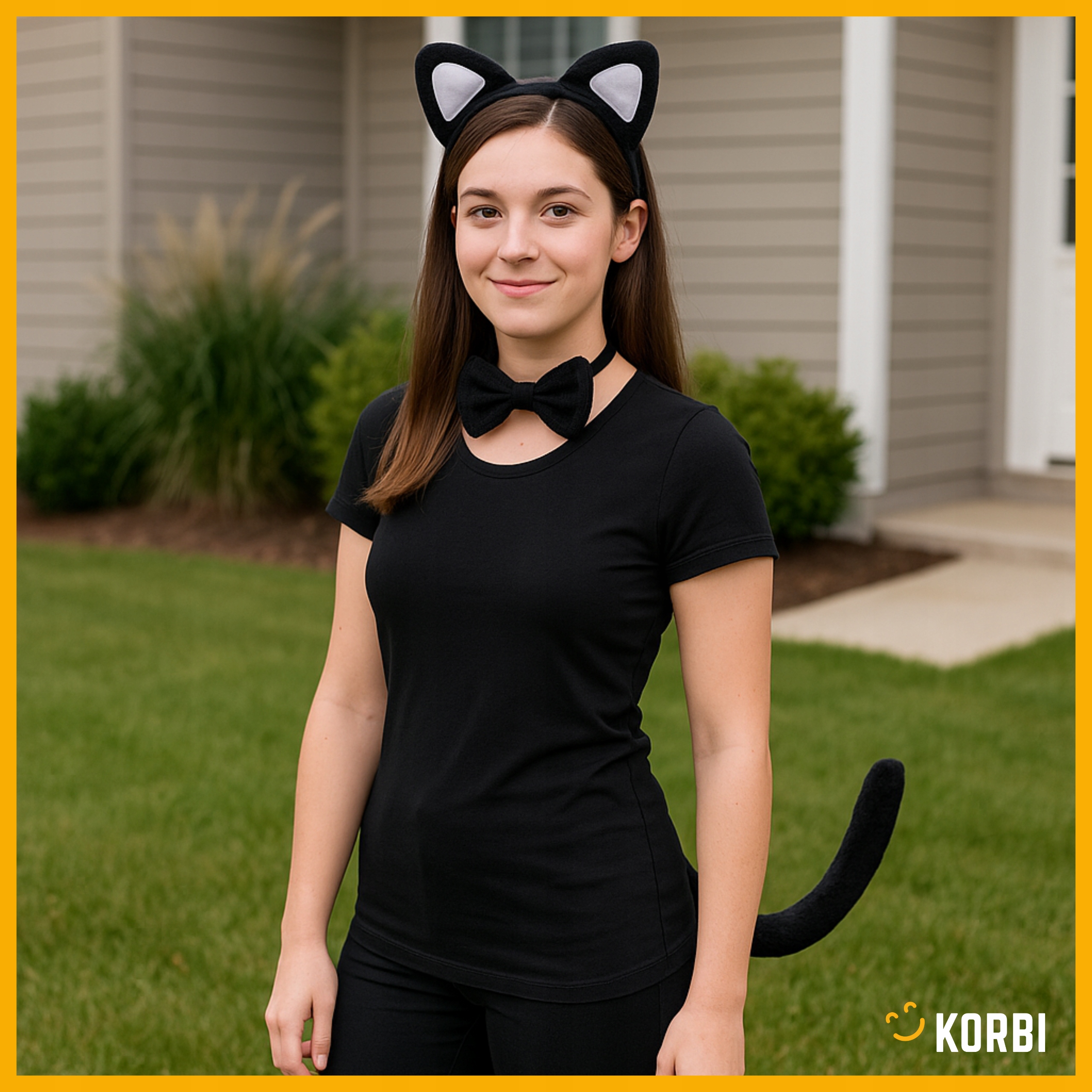 Zestaw składający się z opaski z uszkami, kokardki i ogonka to prosty sposób na stworzenie efektownego, a zarazem urokliwego przebrania. To gotowe akcesoria, które sprawdzą się zarówno jako dodatek do klasycznego stroju kotka, myszki czy innej postaci zwierzęcej. Zestaw wykonany z miękkiego, przyjemnego w dotyku materiału, łatwo się zakłada i dobrze trzyma na głowie oraz ubraniu. Elementy są lekkie i uniwersalne – pasują zarówno dzieciom, jak i dorosłym.