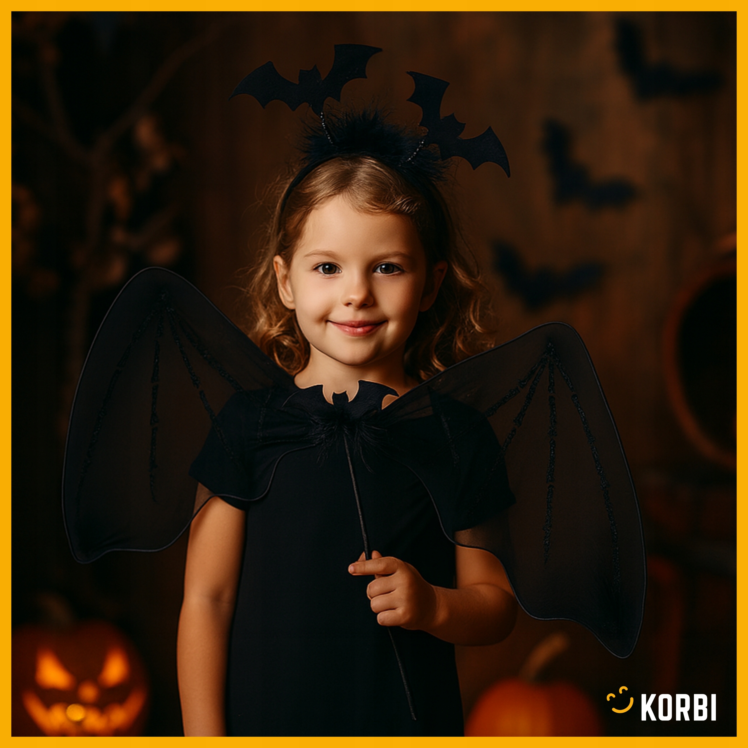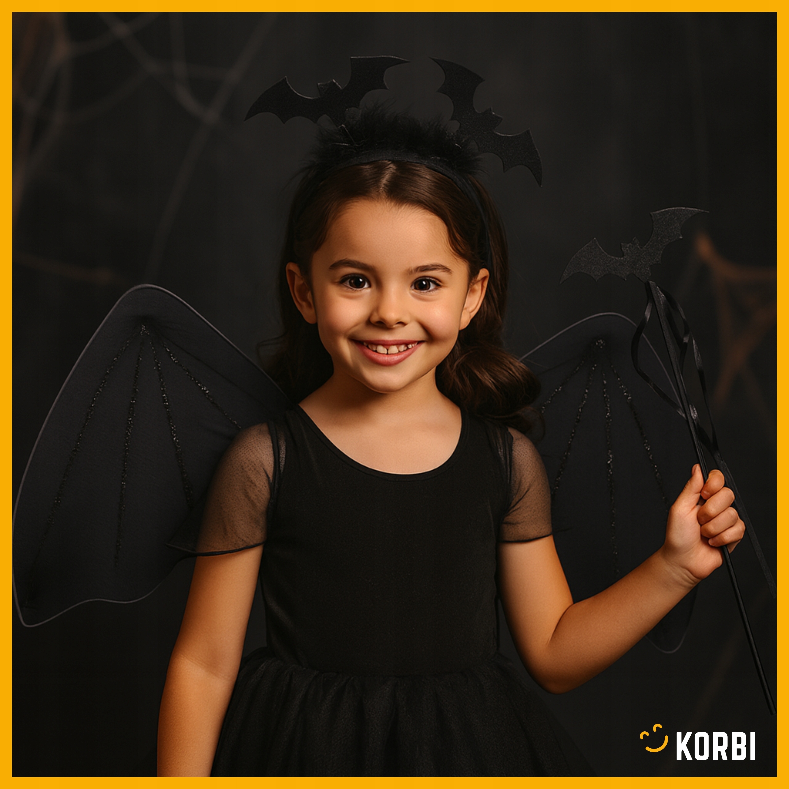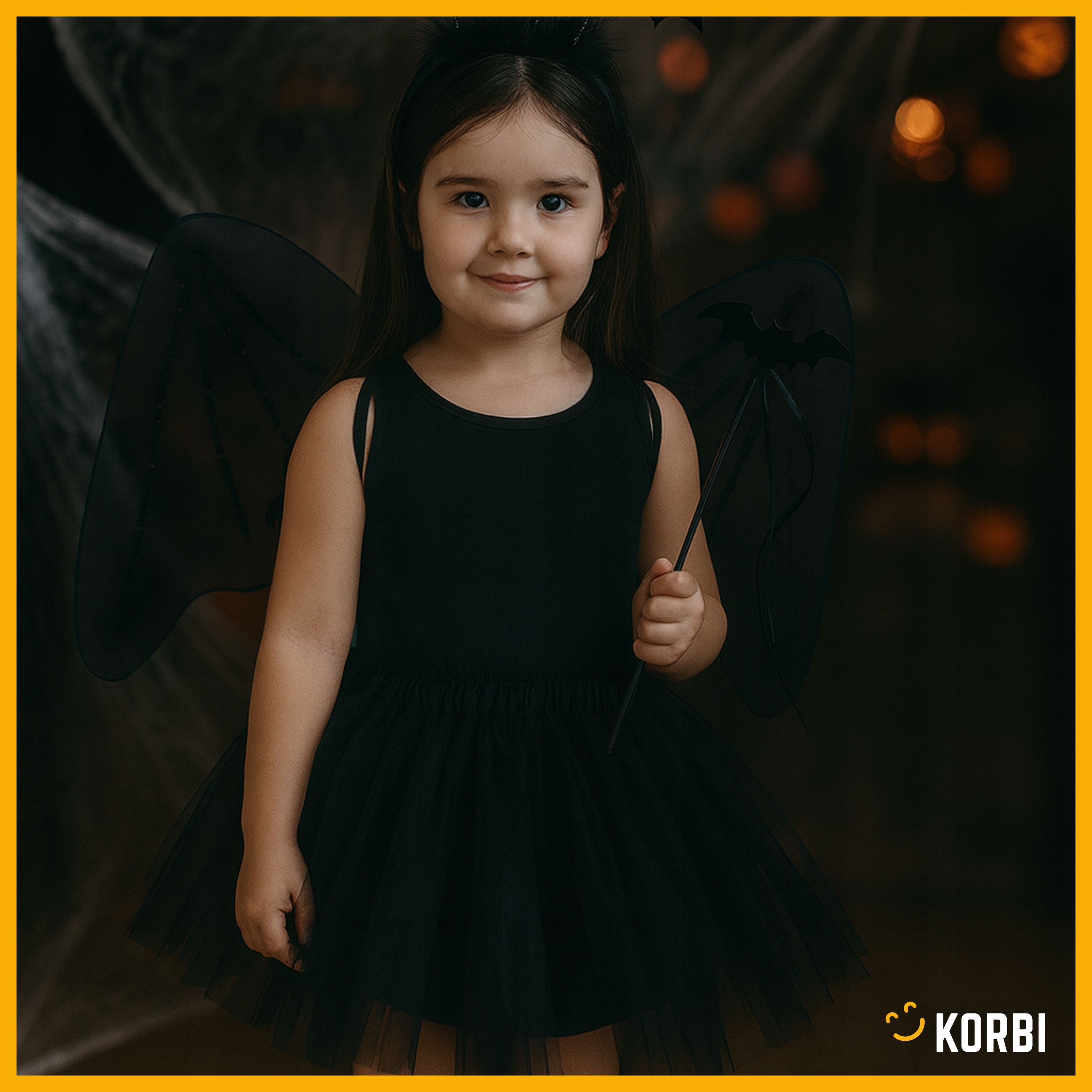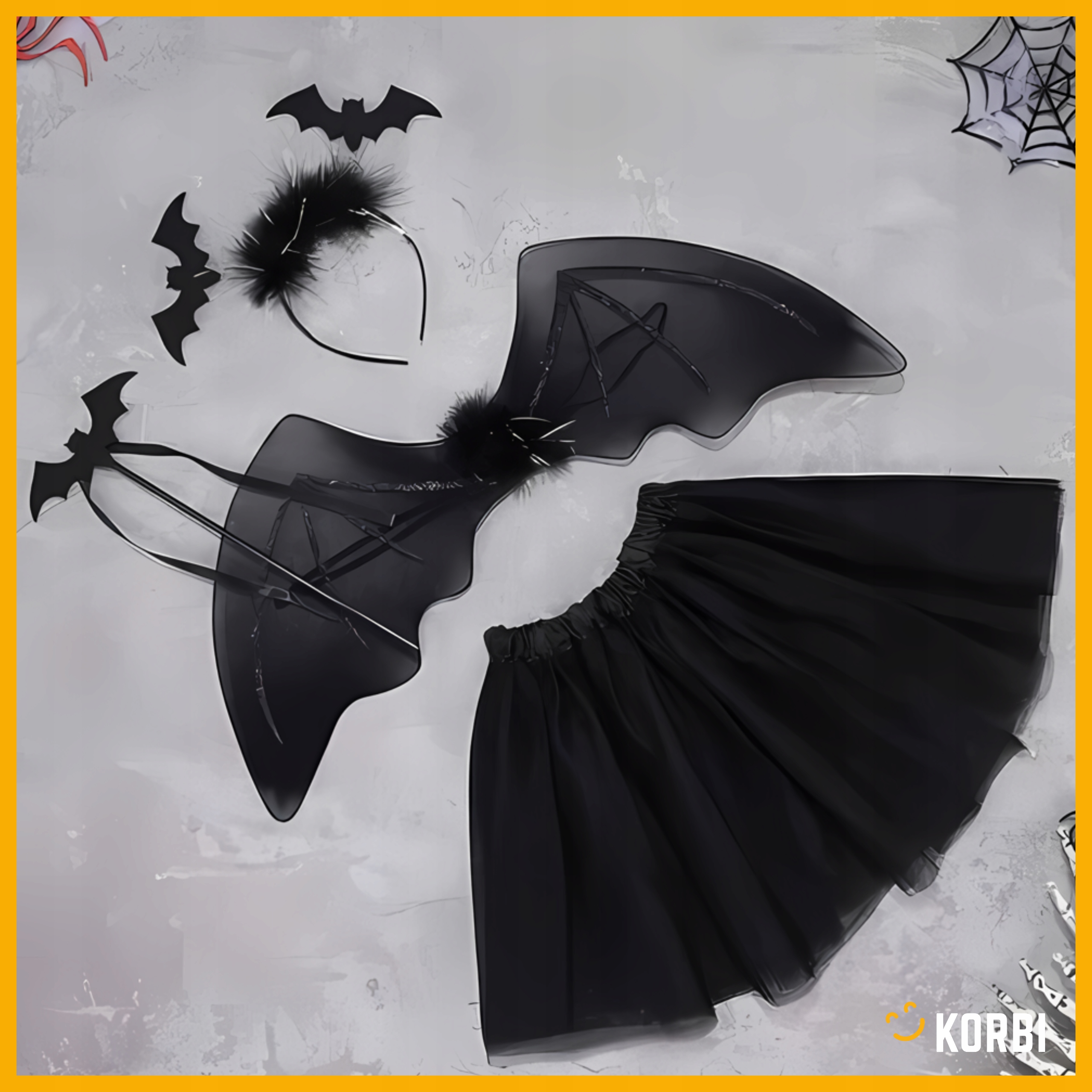 Stylowy i uroczy kostium nietoperza w połączeniu z motywem nietoperza to świetny wybór na Halloween, bal przebierańców czy imprezę tematyczną. Zestaw łączy efektowną tiulową spódniczkę z charakterystycznymi skrzydłami i detalami, które nadają mu wyjątkowego charakteru. Lekki materiał zapewnia wygodę noszenia i swobodę ruchów, a dopasowany krój sprawia, że strój pięknie się prezentuje zarówno podczas zabawy, jak i na pamiątkowych zdjęciach.